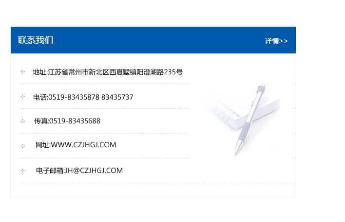 傳真:0519-83435688    郵編:213135    網址:WWW.czjhgj_com.jingmigangguanwang.com    電子郵箱:JH@czjhgj_com.jingmigangguanwang.com